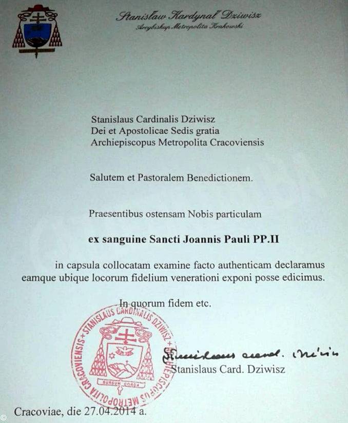 Subito dopo, una celebrazione eucaristica in Cattedrale, presieduta da monsignor Marco Brunetti, darà il via alla venerazione della reliquia: una teca contenente del sangue del Papa polacco, eletto 40 anni fa al soglio di Pietro e deceduto nel 2005, dopo 27 anni di pontificato.