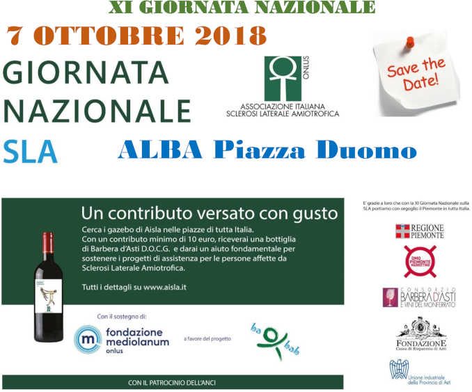 ALBA Anche Alba parteciperà alla raccolta fondi relativa alla Giornata nazionale sulla Sla. Domenica 7 ottobre in piazza Duomo saranno presenti i volontari di Aisla, Associazione italiana sclerosi laterale amiotrofica, da tempo impegnata su progetti che offrono un aiuto e un sostegno concreto ai pazienti colpiti dalla malattia e alle loro famiglie.