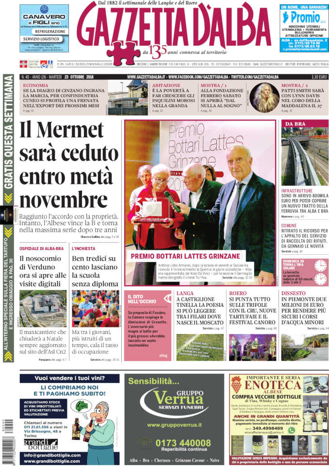 ALBA La prima pagina del numero 40 di Gazzetta d’Alba, che sarà disponibile in edicola e in formato digitale da martedì 23 ottobre.