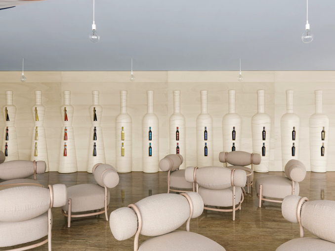 Lei stessa ha voluto guidare la progettazione del dimensionamento di tutti gli spazi interni, disegnare e progettare il design degli interni – wine shop, sala degustazione e zona produttiva – nei minimi dettagli, dalle decorazioni delle pareti, ai soffitti, alla pavimentazione, fino alla scelta degli arredi, di cui alcuni progettati dalla stessa imprenditrice (come ad esempio gli espositori delle bottiglie).