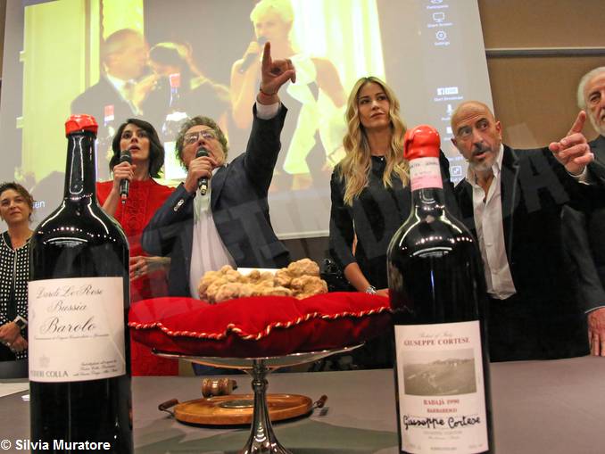 GRINZANE CAVOUR I lotti del pregiato tartufo sono stati battuti in abbinamento ai grandi formati di Barolo e Barbaresco, grazie alla collaborazione con il Consorzio Barolo Barbaresco Alba Langhe e Dogliani. L’evento internazionale ha avuto per battitori d’eccezione Caterina Balivo, Benedetta Parodi ed Enzo Iacchetti, il ricavato complessivo è stato di 393.900 euro. I proventi realizzati a Hong Kong saranno donati all’Istituto Mother’s Choice per i bimbi orfani e le giovani mamme in difficoltà, a Matera saranno devoluti alla Onlus “Con Cuore Impavido”, associazione impegnata in iniziative di sensibilizzazione a favore degli ammalati di SLA e delle loro famiglie, mentre il ricavato di Grinzane sarà in parte destinato alla Fondazione Nuovo Ospedale Alba Bra Onlus.