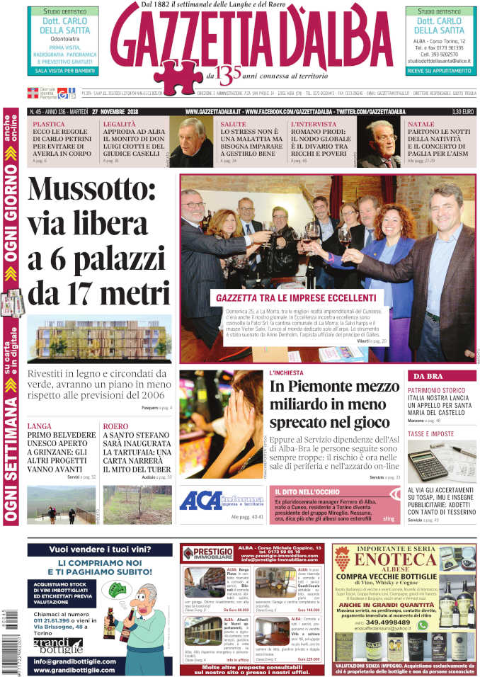 ALBA La prima pagina del numero 45 di Gazzetta d’Alba, che sarà disponibile in edicola e in formato digitale da martedì 27 novembre.