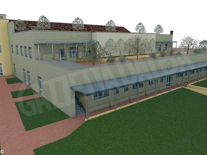 La palestra avrà un’altezza di 7,5 metri con dimensioni adeguate a giocare a basket e pallavolo, dotata di locali magazzino, vani tecnici e una piccola tribunetta telescopica. Gli spogliatoi verranno in parte ricavati con la ristrutturazione del piano terreno della vecchia palazzina e in parte con la realizzazione di uno spazio a ridosso della palestra.