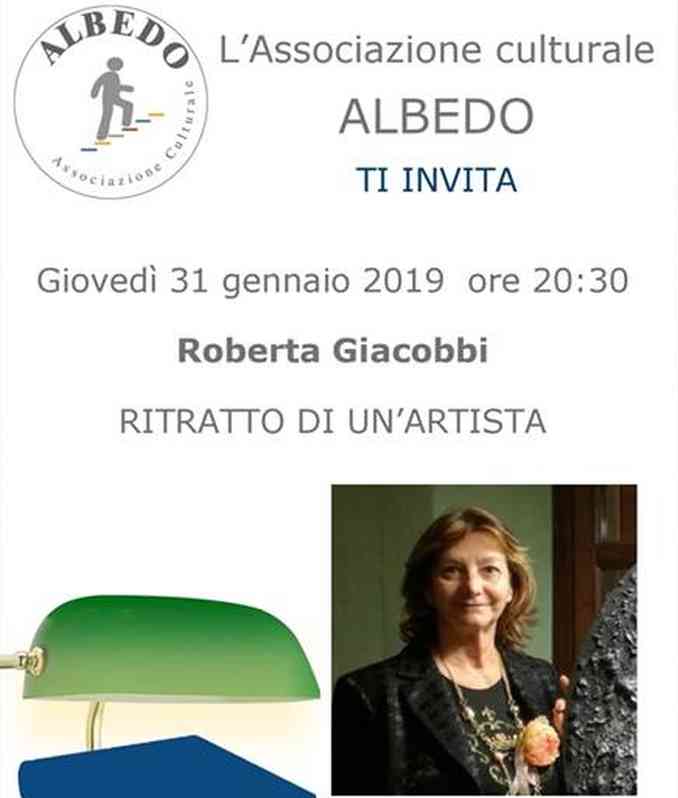 BRA Proseguono gli appuntamenti culturali del giovedì sera con l’associazione Albedo che giovedì 31 gennaio, alle 20.30, nella sede di via Mathis 10 a Bra propone l’incontro dal titolo Ritratto di un’artista, che vedrà protagonista la pittrice Roberta Giacobbi.