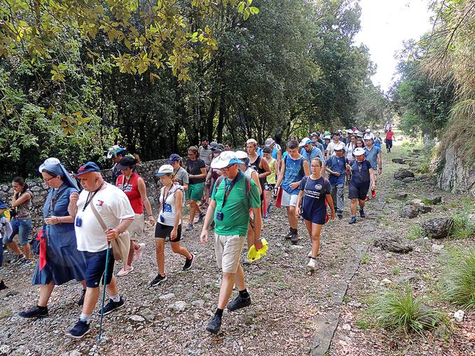 Il gruppo di giovani che nell’agosto scorso ha partecipato al pellegrinaggio paolino, lungo la via Appia, da Pozzuoli fino a Roma per l’incontro col Papa.