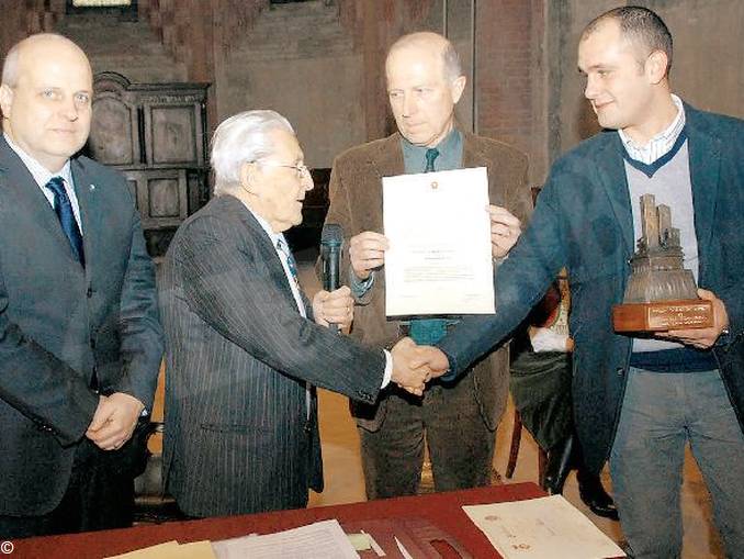 Walter Mazzocchi (terzo da sinistra), ritira il premio Amico di Alba assegnato nel 2010 dalla Famija albèisa.