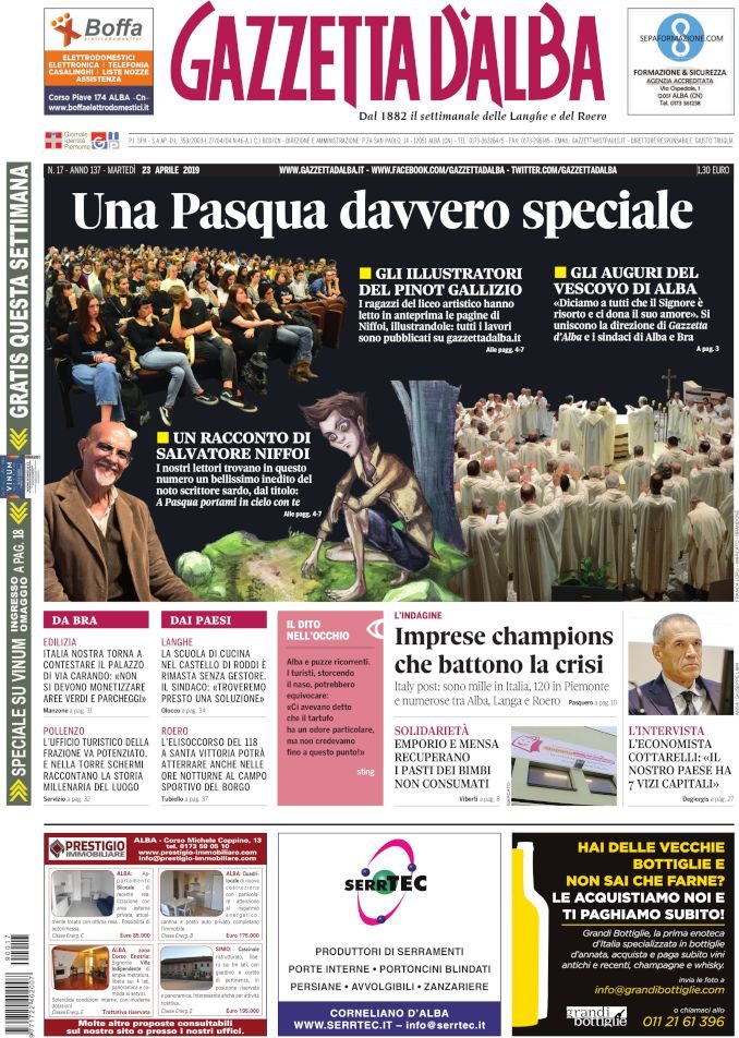 ALBA In concomitanza con le festività pasquali il numero 17 di Gazzetta d’Alba, sarà disponibile in edicola e in formato digitale già da domani sabato 20 aprile. Ecco la prima pagina in anteprima.