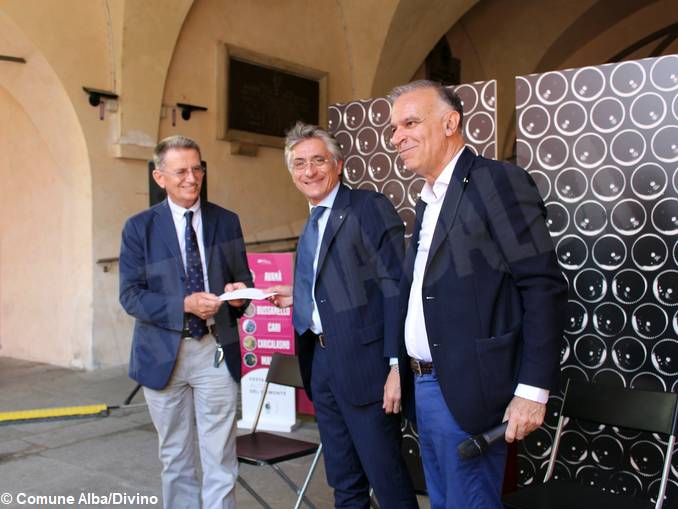 La manifestazione si è aperta con un momento di inaugurazione sotto i portici del Palazzo comunale, alla presenza del neo sindaco di Alba Carlo Bo che, insieme a Massimo Corrado di Go Wine, ha consegnato un riconoscimento a Vincenzo Gerbi, professore ordinario di scienza e tecnologia degli alimenti nel dipartimento di scienze agrarie, forestali e alimentari dell’Università di Torino.
