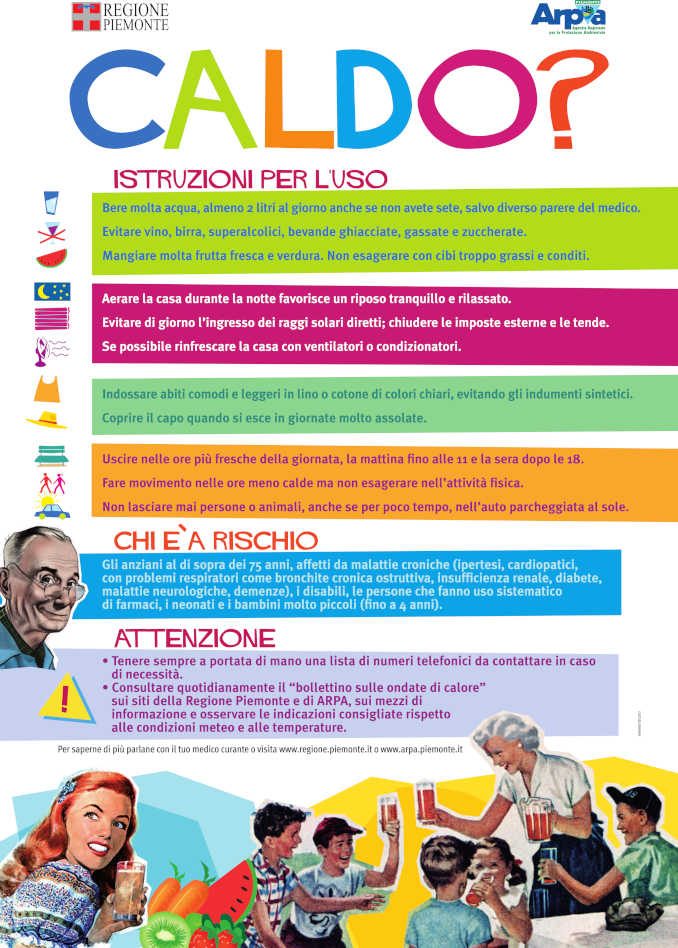 È sempre utile ricordare i consigli per affrontare al meglio le ondate di calore, come sintetizzati dal Ministero della salute: innanzitutto indossare un abbigliamento non aderente e leggero; rinfrescare l’ambiente domestico e di lavoro; ridurre la temperatura corporea con bagni e docce con acqua tiepida e bagnando viso e braccia con acqua fresca; ridurre il livello di attività fisica; uscire di casa nelle ore meno calde della giornata; bere con regolarità e alimentarsi prediligendo cibi leggeri, frutta e verdura; se si sale in macchina dopo che è stata al sole, tenere per alcuni minuti gli sportelli aperti; non lasciare mai persone o animali nell’abitacolo, neanche per pochi minuti; conservare correttamente i farmaci, in particolare tenendo in frigorifero quelli per cui è prevista una temperatura di conservazione non superiore a 25-30 gradi.