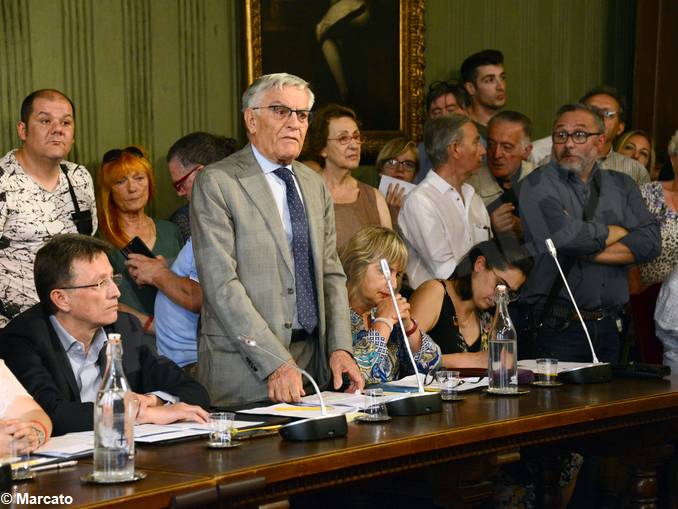 Il primo consigliere a prendere la parola è stato il candidato sindaco sconfitto Olindo Cervella che ha provato a innescare la polemica, ma senza affondare il colpo. Cervella ha ricordato l’assenza di conflitti di interesse della precedente sindacatura di Maurizio Marello e ha dichiarato: «Gli eletti, in particolare quelli che hanno ricevuto deleghe, non siano investiti dal Comune di operatività di genere incompatibile con la carica che saranno chiamati a ricoprire o, eventualmente, cessino ogni operatività che abbia come committente il Comune stesso o enti da esso partecipati».