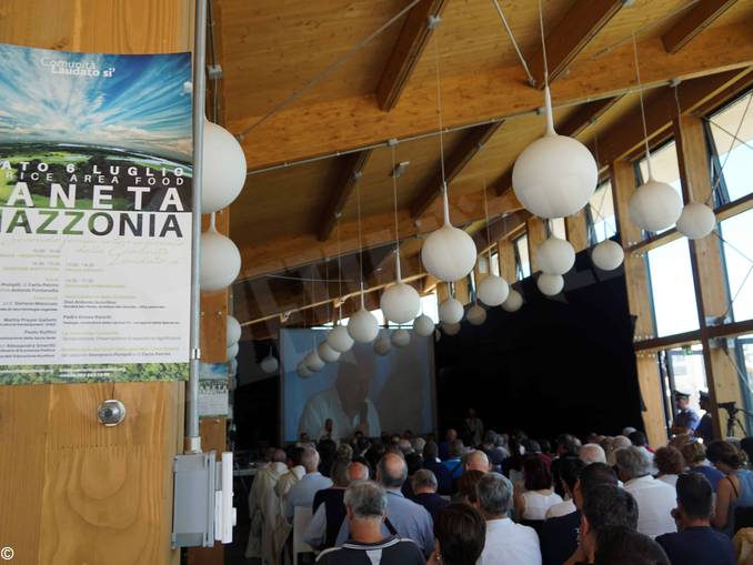 Dopo i saluti di Carlin Petrini e di monsignor Domenico Pompili, gli ideatori delle Comunità che si ispirano all’enciclica di papa Francesco, il biologo Stefano Mancuso ha stupito l’affollata assemblea, che includeva anche i giovani del progetto Policoro: «Se non si inverte la rotta – ha detto entro il 2072, qualsiasi risorsa della terra usata dall’uomo sarà finita». Riferendosi all’Amazzonia, l’immenso “polmone verde” da cui dipende il clima dell’intero pianeta, ha invitato a concentrarsi non più sull’intelligenza “animale”, ma su quella “vegetale”. Sono le piante a produrre vita, e noi ne siamo totalmente dipendenti. L’85% della terra – ha ricordato – è costituito dalle piante. E solo lo 0,3% dagli esseri animali (uomini inclusi). Una piccola “rivoluzione copernicana”, quella indicata da Mancuso, che ha indotto le Comunità Laudato si’ a ripensare anche il proprio logo, lanciando un concorso aperto a tutti: non più due mani che racchiudono un germoglio, ma le piante che includono l’essere umano.