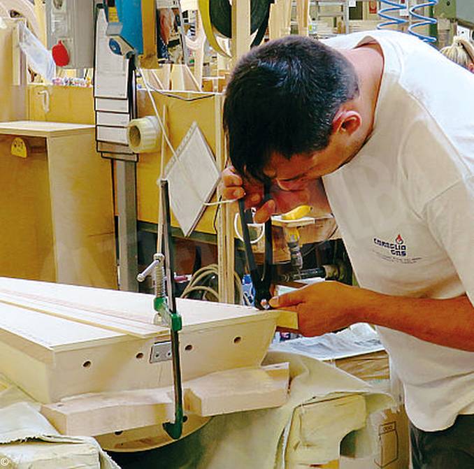 «Ero mobiliere a Saluzzo e avevo già dieci anni di esperienza quando sono venuto in prova alla Salvi harps», racconta Baudino. «Avevo sentito che cercavano artigiani e mi sono presentato. Eravamo 25 all’inizio. Victor Salvi, una persona davvero fantastica, era arrivato a Piasco da Genova, dove aveva già impiantato un’azienda. Nella sua continua ricerca del meglio, aveva saputo che nel Saluzzese era reperibile manodopera molto qualificata. Lui, che voleva costruire le arpe migliori del mondo, dal suono perfetto, trovò qui persone tenaci e capaci: intarsiatori, falegnami, doratori e scultori».