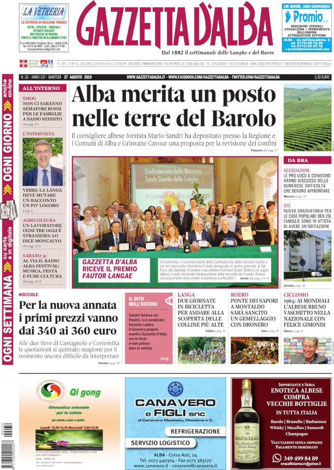 ALBA La prima pagina del numero 32 di Gazzetta d’Alba, che sarà disponibile in edicola e in formato digitale da martedì 27 agosto.
