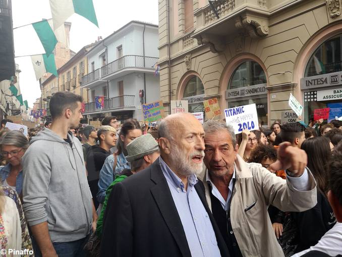 Tra i partecipanti alla manifestazione del Fridays for future ad Alba c’è anche il fondatore di Slow food Carlin Petrini: «È importante essere qui per testimoniare la vicinanza verso le idee dei giovani: sono loro a portare una ventata di ossigeno rispetto a una politica che è ormai insensibile ai temi ambientali», ci ha detto.