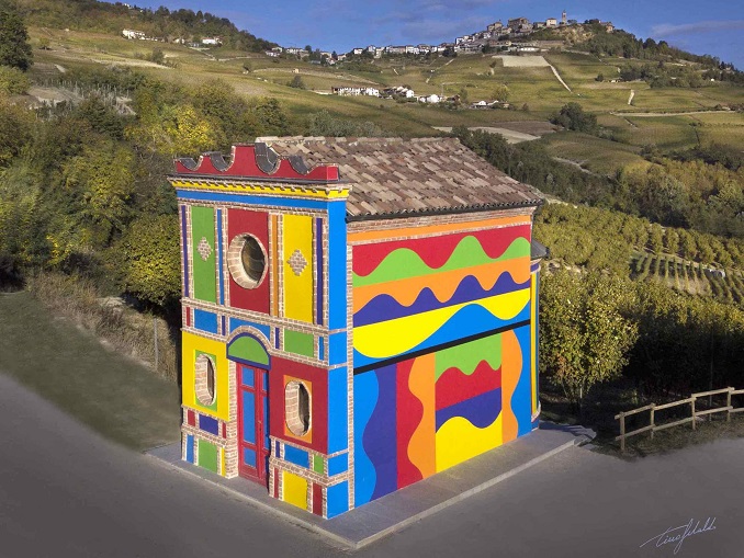 LA MORRA Fu costruita come un luogo per difendersi dalle intemperie, per poi diventare una cappella mai consacrata e negli ultimi vent’anni uno dei simboli per eccellenza delle colline Unesco, con i suoi colori inconfondibili tra le vigne. Era il 1999 quando l’artista inglese David Tremlett e il collega statunitense Sol Lewitt arrivarono nelle Langhe per affrescare la chiesetta della Madonna delle Grazie, nel prestigioso vigneto Brunate di La Morra, su chiamata della famiglia Ceretto. Colore dopo colore, pennellata dopo pennellata, in quell’anno qualcosa cambiò e l’arte contemporanea approdò per la prima volta in collina.