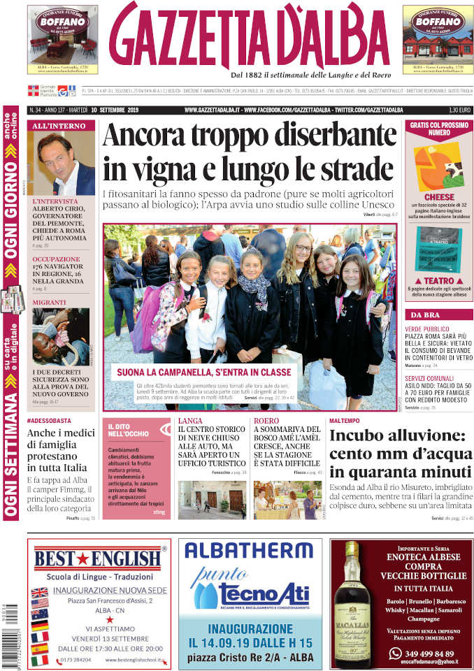 ALBA Gazzetta d’Alba è disponibile in edicola e in formato digitale da oggi, martedì 10 settembre: ecco le notizie principali.