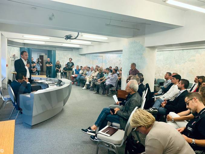 Dopo le tappe in provincia di Cuneo, Vercelli, Alessandria, Torino e nel Vco, il presidente Cirio e l’assessore ai Trasporti e Protezione civile Marco Gabusi hanno incontrato oggi nel palazzo della Provincia di Asti una sessantina di sindaci dell’Astigiano, i cui territori sono stati danneggiati dai nubifragi dello scorso 12 agosto. Presente anche il presidente della Provincia di Asti Paolo Lanfranco e il sindaco Maurizio Rasero.