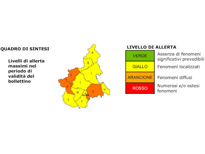 Sono attesi allagamenti, fenomeni franosi e innalzamenti dei livelli dei corsi d’acqua del reticolo secondario e, domani, anche i corsi d’acqua principali nelle zone maggiormente colpite dalle piogge subiranno innalzamenti. In mattinata risponderanno in particolare Dora Riparia, Stura di Lanzo e Orco a cui si aggiungono, nel pomeriggio, Toce, Sesia e il Po nelle sezioni di Carignano, San Sebastiano, Crescentino e Valenza, che raggiungeranno la moderata criticità.