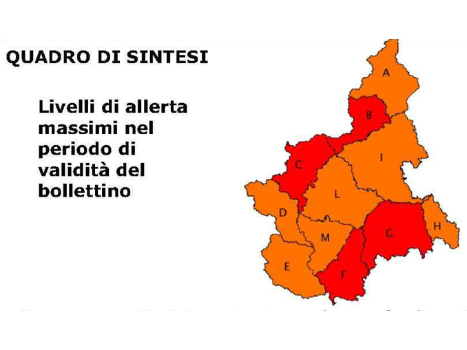 L’allerta per il maltempo diventa rossa in un terzo del Piemonte. Nel bollettino rilasciato alle 13 di sabato 23 novembre dall’ Arpa (Agenzia regionale per la protezione ambientale) l’allarme per «esondazione di corsi d’acqua, allagamenti anche estesi e frane diffuse» riguarda sia la fascia a Sud compresa tra le valli Tanaro, Belbo e Bormida, tra le province di Asti, Alessandria e Cuneo sia un’ampia area a nord le Valli Sesia, Cervo e Chiusella, Orco, Lanzo, bassa valle di Susa e Sangone, nelle province di Biella, Vercelli e Torino.