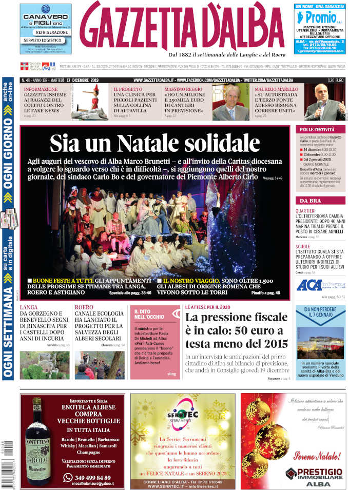 ALBA Gazzetta d’Alba è disponibile in edicola e in formato digitale da oggi, martedì 17 dicembre.