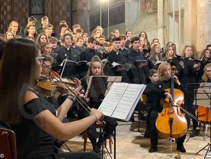 ALBA La musica vissuta e suonata dai ragazzi, in un gemellaggio tra Alba e Cuneo. Venerdì 13 dicembre, nella chiesa di San Domenico, si è svolto il tradizionale concerto di Natale delle orchestre e dei cori scolastici della città: a esibirsi il coro del liceo musicale Da Vinci di Alba, insieme al coro e all’orchestra del liceo musicale Ego Bianchi di Cuneo, diretti da Sergio Daniele; nella seconda parte, il coro del Da Vinci si è esibito con il coro Anna Maria Alessandria del Govone di Alba, con la direzione di Giordano Ricci. In scaletta brani di Vivaldi, ma anche immancabili canti natalizi. Ospite della serata Maria Teresa Furci, provveditore di Cuneo, che ha voluto esibirsi al violino insieme ai ragazzi.