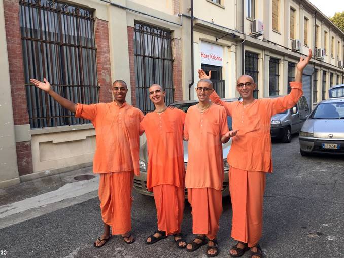 Si tratta dei monaci Hare Krishna e provengono dal centro culturale di Torino. Sono impegnati, come l’anno scorso, in una maratona per la distribuzione di libri e saranno presenti anche in altre città piemontesi. Se qualcuno vuole fare loro un’offerta, essa verrà utilizzata, per acquistare cibo per esser poi distribuito ai senzatetto. Anzi, saranno loro a lasciarvi un pieghevole con tutte le informazioni sul loro operato e anche un gustoso biscotto.
