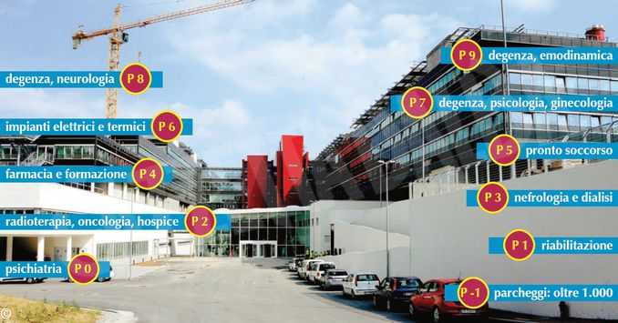 Innanzitutto, c’è da sottolineare la nuova numerazione dei piani. Per anni si è pensato che il piano terreno potesse essere indicato per il pronto soccorso, con cinque piani sotto e cinque piani sopra. Poi, si è optato per una strutturazione dal basso, con i parcheggi al piano –1, al piano terreno la psichiatria, per arrivare fino al nono piano con le degenze. La novità dell’ultimissima ora è la scelta di spostare a Verduno anche la direzione generale, al momento in via Vida.