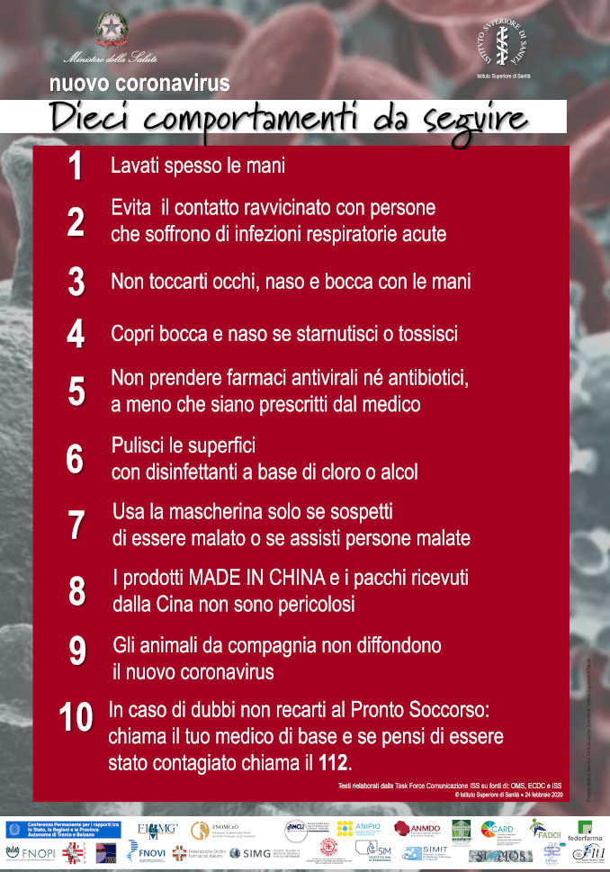 Si ricorda, infine, di recarsi in ospedale solo per assoluta necessità, e che, per ulteriore precauzione, le visite ai ricoverati sono limitate a un singolo visitatore per paziente. Queste informazioni, integrano il decalogo diffuso dal Ministero della Salute.