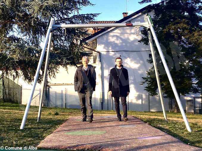 ALBA Risale agli ultimi giorni del 2019 la scomparsa della seduta dell’altalena dall’area giochi Giovanni Dalmasso in corso Langhe, a fianco del campo da calcio e del palasport. L’attrezzatura che ne permetteva l’uso anche ai bambini disabili è stata sottratta, forse rubata dopo essere stata danneggiata, e nei giorni scorsi, dopo le segnalazioni dei cittadini e del comitato di quartiere il vicesindaco Emanuele Bolla e l’assessore ai lavori pubblici Massimo Reggio hanno effettuato un sopralluogo: «Vogliamo rassicurare che presto l’altalena verrà sostituita e presto metteremo in campo interventi in molte aree verdi della città, con uno sforzo significativo che restituirà spazi giochi più belli e più sicuri, grazie anche a un grande lavoro di monitoraggio dei nostri tecnici comunali», spiega Bolla.