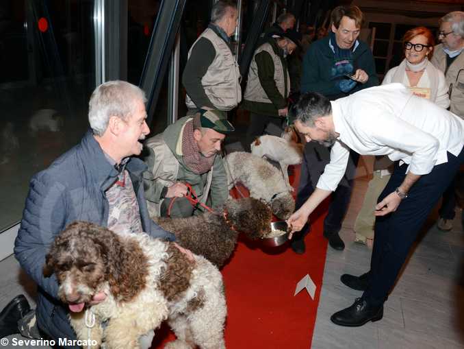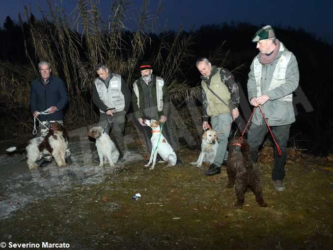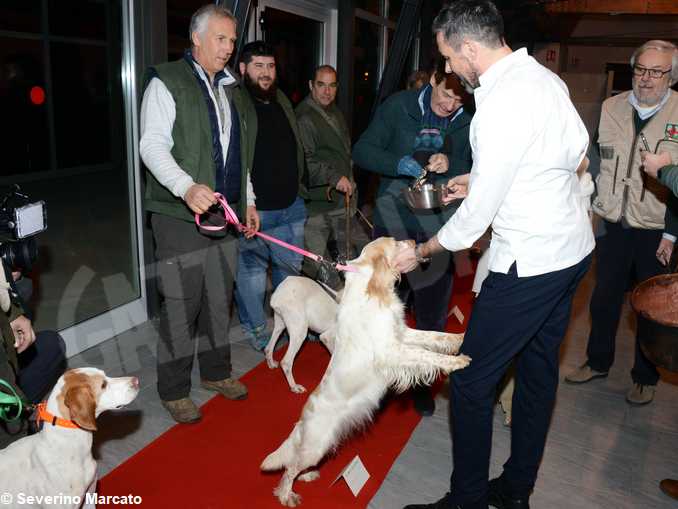 SANTO STEFANO ROERO L’ultima notte del tartufo bianco, il 31 gennaio, quella in cui viene ufficialmente chiusa la stagione di raccolta, è stata celebrata come mai prima d’ora. Partendo dalla constatazione che, complici anche i cambiamenti climatici, gli ultimi tartufi della stagione sono i migliori come qualità, il Comune ha voluto organizzare un’ultima cerca e, soprattutto una suggestiva cena di fine stagione. Di particolare effetto il pasto di ringraziamento offerto ai cani, una zuppetta preparata dallo chef stellato Davide Palluda con lamelle di trifola bianca offerte da Andrea Rossano.