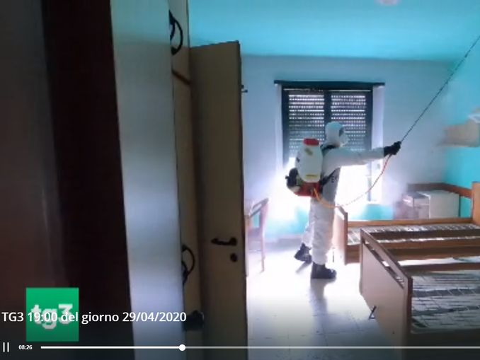 SANTO STEFANO ROERO Sono in corso da alcuni giorni le operazioni di sanificazione delle case di riposo piemontesi affidate all’Esercito; questa sera (mercoledì 29) l’edizione nazionale del Tg3 ha mandato in onda un servizio per illustrare le operazioni avvenute alla casa di riposo Le acacie di Santo Stefano Roero. Le immagini sono visibili qui, a partire dal minuto 7.30 circa.
