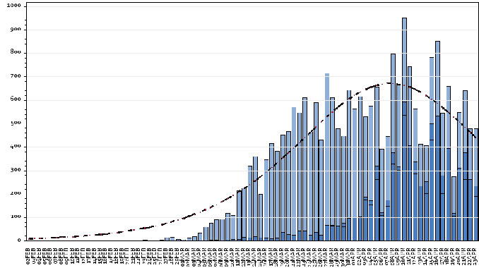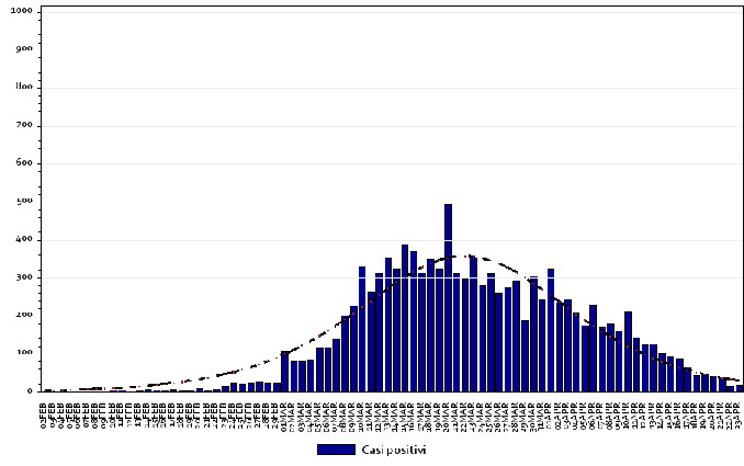 Il Seremi, il servizio regionale di controllo e vigilanza per le malattie infettive, parla di nuovi casi per inizio dei sintomi sotto le 50 persone al giorno sin dal 18 aprile, dopo il picco di 226 persone registrato il 10 aprile (grafico qui sotto). Lo stesso vale per i decessi, una ventina per giornata, mai comunque sopra i 60 come invece registrato dall’Unità di crisi che diffonde i numeri man mano che le vengono comunicati. «Il calo dei contagi, insomma, è in corso», sostiene Icardi, che indica nel 60% circa i nuovi positivi riscontrati nelle residenze per anziani.