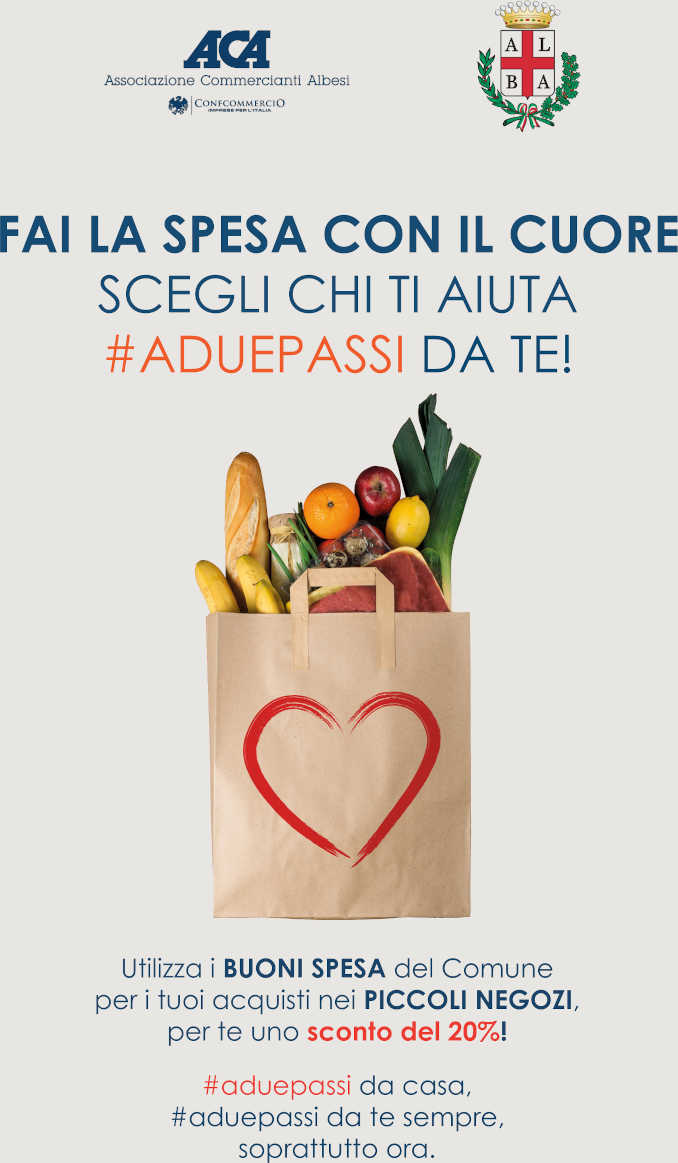 ALBA Un gesto di sensibilità e di concreta solidarietà dal commercio di vicinato di Alba nei confronti delle famiglie in difficoltà economica a causa dell’emergenza coronavirus. Come noto, il governo ha deciso di erogare ai Comuni una somma da destinare ai cittadini meno abbienti, affinché possano fare la spesa ed assicurarsi quanto necessario.