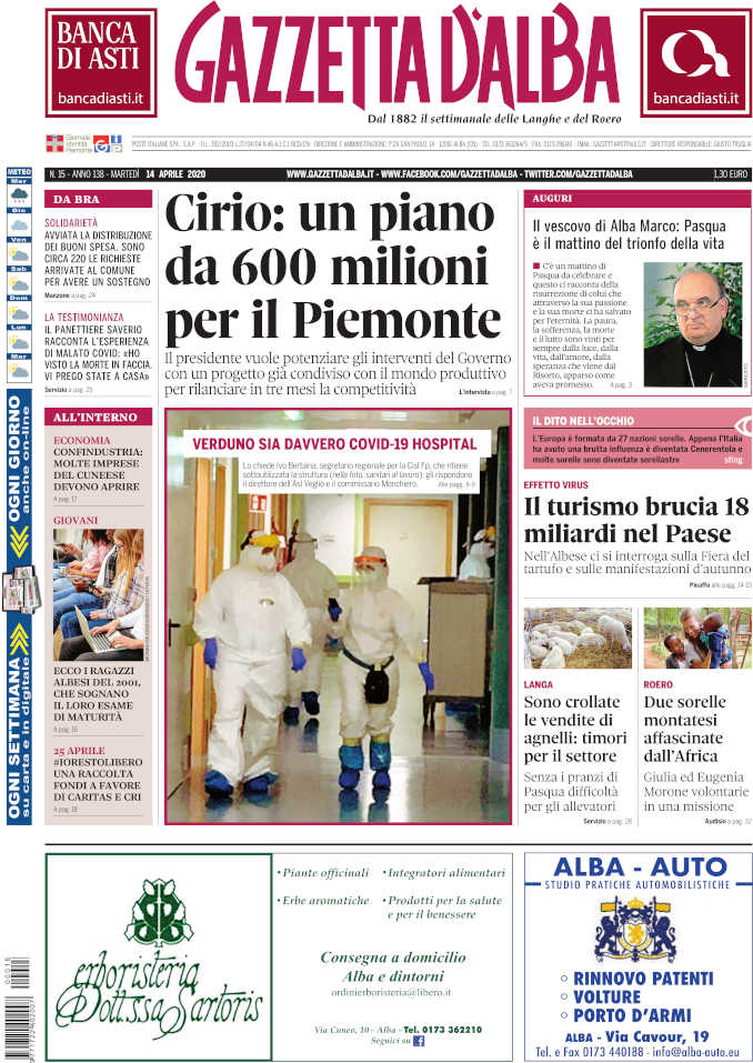 La copertina di Gazzetta d’Alba in edicola sabato 11 aprile