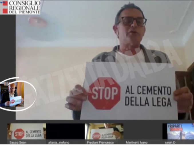 «È la prima protesta avvenuta in videoconferenza nella storia del Consiglio regionale del Piemonte, un primato di cui avremmo fatto volentieri a meno», spiega il consigliere dei 5 stelle Ivano Martinetti. «La contestazione nasce per denunciare la colata di cemento che arriverà sul territorio con le scellerate scelte di questa Giunta. Sarà un Riparti cemento e con esso maggiore rischio idrogeologico, meno sicurezza per i cittadini e nuove spese per porre rimedio ai danni di alluvioni ed esondazioni».