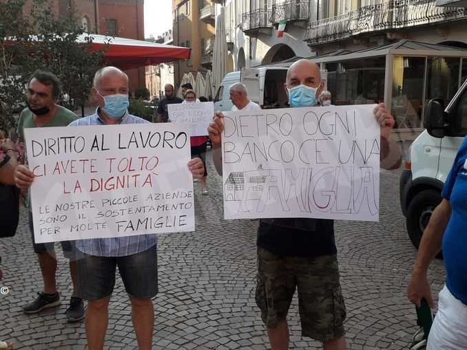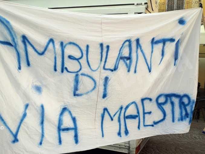 Gli ambulanti che non possono tornare in via Maestra protestano 1 Agosto 2020 Alba, Primo Piano Versione accessibile ALBA È in corso nel centro storico di Alba il sit-in dei 38 ambulanti “sfrattati” da via Maestra e ricollocati in piazza Marconi da questa mattina, sabato 1 agosto. Al loro fianco, le sigle sindacali di categoria, Anva, Fiva e Goia. ambulantimercato
