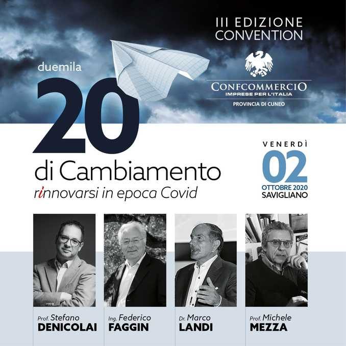SAVIGLIANO Venerdì 2 ottobre, dalle 9.30 alle 12.30, presso la Sala della Crusà Neira di Savigliano (via San Francesco 2), Confcommercio Imprese per l’Italia della Provincia di Cuneo organizza la terza edizione della convention di sistema, dal titolo “Duemila20 di cambiamento. Rinnovarsi in epoca Covid”, per riflettere sul cambiamento globale e locale in atto innescato dell’emergenza sanitaria, partendo dal presupposto che ogni crisi genera un’opportunità e ribadendo il concetto che #Confcommerciocè. L’evento è organizzato grazie al sostegno della Camera di Commercio di Cuneo, della Fondazione Cassa di Risparmio di Cuneo e di UBI banca, oltre a Vittoria assicurazioni, Egea group e Genesis mobile. A causa delle restrizioni dovute al Covid-19, l’iniziativa sarà trasmessa in streaming attraverso Facebook e sui profili della rete Confcommercio della provincia di Cuneo, mentre l’accesso in presenza sarà consentito a un ristretto numero di partecipanti, con invito diretto.