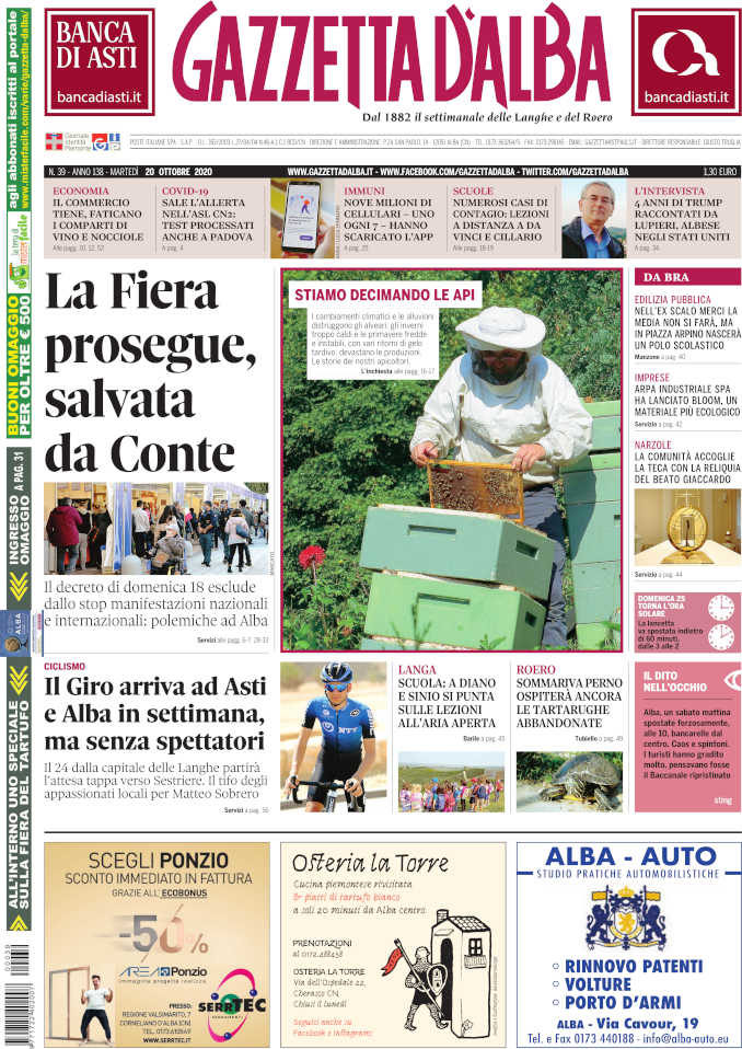 ALBA In anteprima la copertina del numero 39 di Gazzetta d’Alba che sarà disponibile in edicola e in formato digitale da martedì 20 ottobre.