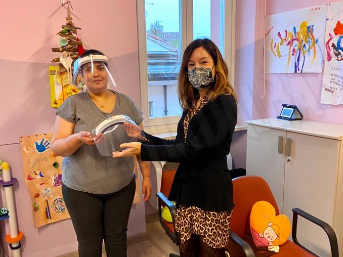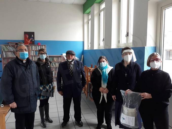 Paola Ferrero, Maria Carla Mantovani, Paolo Saredi e Ico Turra si sono recati al doposcuola dell’oratorio del Duomo, recapitandole al parroco Don Dino Negro e alla responsabile suor Paola. Le visiere serviranno ai volontari che seguono i ragazzi delle scuole medie e i bambini delle elementari. Enzo Demaria e Massimo Donotti hanno consegnato le visiere alla direttrice e alla presidente dell’Asilo nido Città di Alba, ricevendo un bellissimo disegno come ringraziamento da parte dei bambini mentre i past president Ezio Porro e Cesare Girello le hanno portate a Paola Boggetto, dirigente dell’istituto Piera Cillario; infine Remo Gattiglia e Roberto Reggio hanno portato gli schermi protettivi agli operatori del consorzio socio assistenziale di Alba.