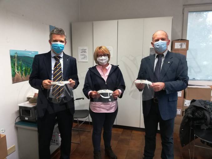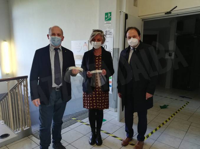 ALBA I soci del Rotary club Alba hanno consegnato a docenti e operatori dei servizi scolastici oltre duecento visiere da utilizzare durante le lezioni. Dopo l’istituto superiore Govone, l’Istituto comprensivo del centro storico e quello della Moretta, i rotariani Paolo Fortuna e Ezio Porro hanno portato le visiere a Elena Ciarli, dirigente dell’Istituto comprensivo quartiere Piave-San Cassiano, mentre Viviana Frediani le ha consegnate al nido comunale Ippocastano.