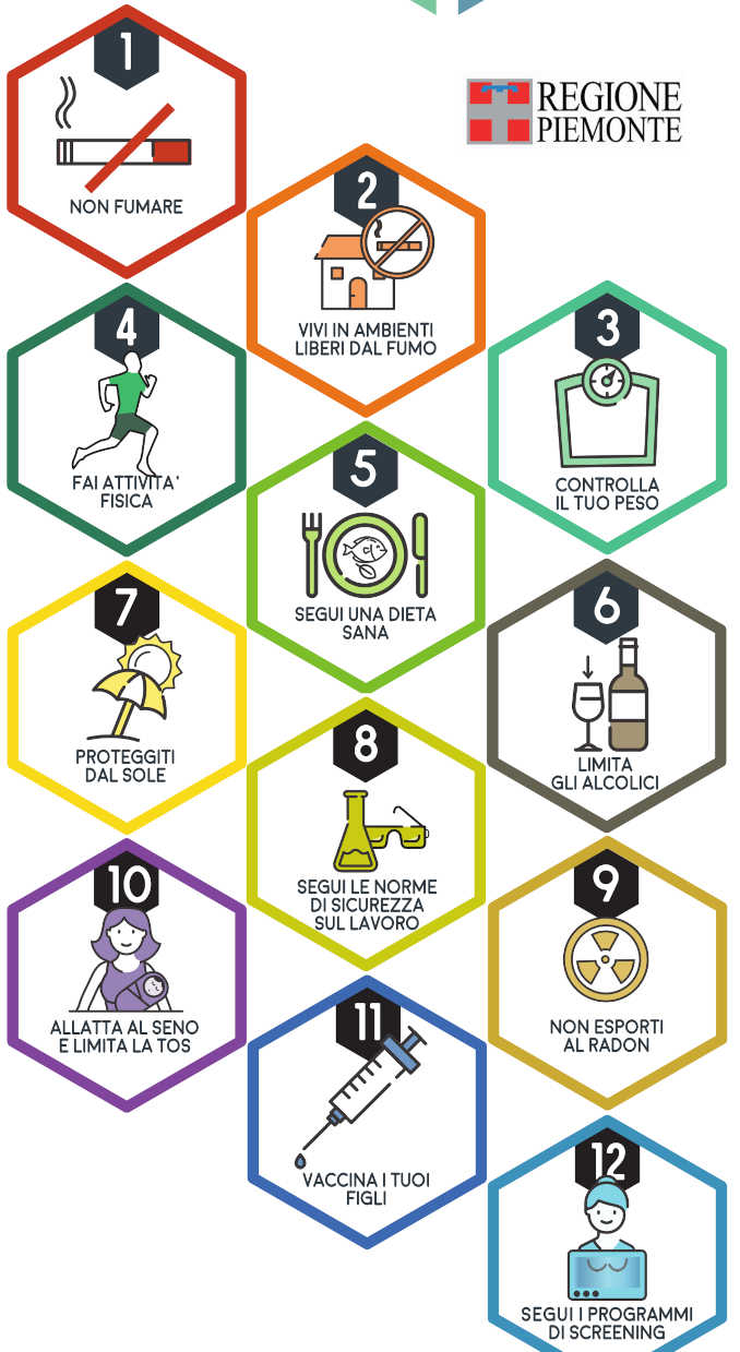 MEDICINA Ridurre il rischio di sviluppare un cancro è possibile, soprattutto se i comportamenti corretti e la prevenzione cominciano da giovanissimi. Lo studio Health behaviour in school-aged children (Hbsc), condotto allo scopo di fotografare e monitorare la salute degli adolescenti di 40 Paesi nel mondo, rileva anche per l’Italia l’aumento dei comportamenti a rischio al crescere dell’età degli adolescenti. Parte da qui la campagna di sensibilizzazione Il segreto delle 12 regole promossa dalla rete oncologica del Piemonte e Valle d’Aosta in partnership con Pfizer per far conoscere ai ragazzi e ragazze delle seconde classi delle scuole piemontesi e della Valle d’Aosta i comportamenti da seguire per ridurre il rischio di sviluppare un tumore, attraverso le 12 regole contenute nel Codice europeo contro il cancro.