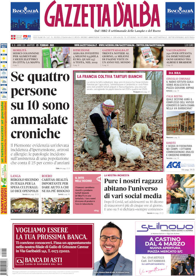 La copertina di Gazzetta d’Alba in edicola martedì  23 febbraio