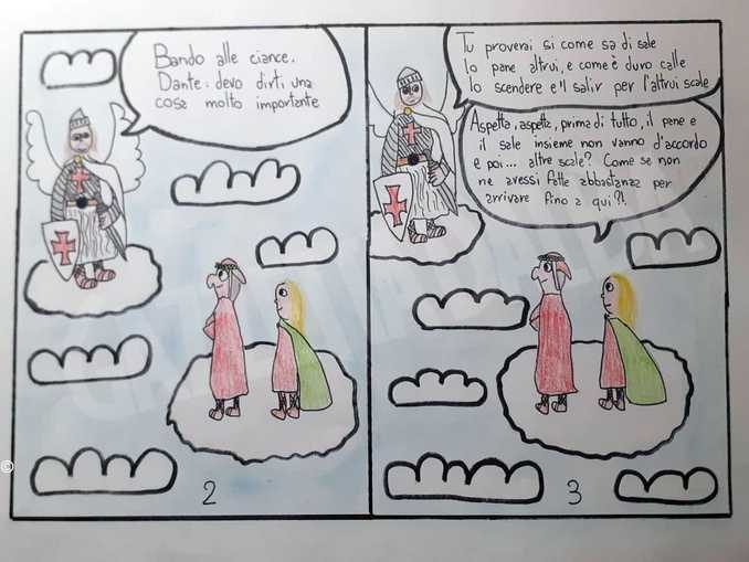 DOGLIANI Il 25 marzo è la giornata nazionale dedicata a Dante Alighieri, istituita nel 2020 dal Consiglio dei ministri. L’edizione 2021 avviene nel settecentesimo anniversario della morte del poeta e anche le scuole di Dogliani hanno voluto celebrarlo. Gli alunni della secondaria di primo grado dell’istituto comprensivo hanno intrapreso un percorso didattico per trasformare alcuni episodi della Divina commedia in fumetto. Protagonista del lavoro, iniziato in presenza e terminato in didattica a distanza, è la classe II A. «Trasformare in un fumetto un’opera letteraria rende più facile capire l’opera stessa e si impara mentre ci si diverte», ha commentato Greta, una degli studenti che hanno partecipato al progetto. Molto apprezzato, nonostante le limitazioni imposte dall’attuale momento di emergenza, il lavoro di gruppo. Alcuni dei fumetti realizzati sono visibili sul sito Web dell’Istituto comprensivo di Dogliani.