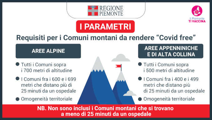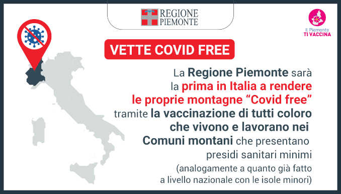 I Comuni interessati sono stati divisi in due fasce: quelli con priorità alta, dove la vaccinazione a tappeto partirà subito, sono 218 con 120 mila residenti, 110 mila dei quali vaccinabili. Escludendo i già vaccinati, restano 71.349 persone da vaccinare. «Siamo la prima Regione che rende le sue montagne Covid-free. Abbiamo fatto una proposta al Governo; oggi ho sentito il generale Figliuolo, che ha dato il suo assenso», spiega Cirio.