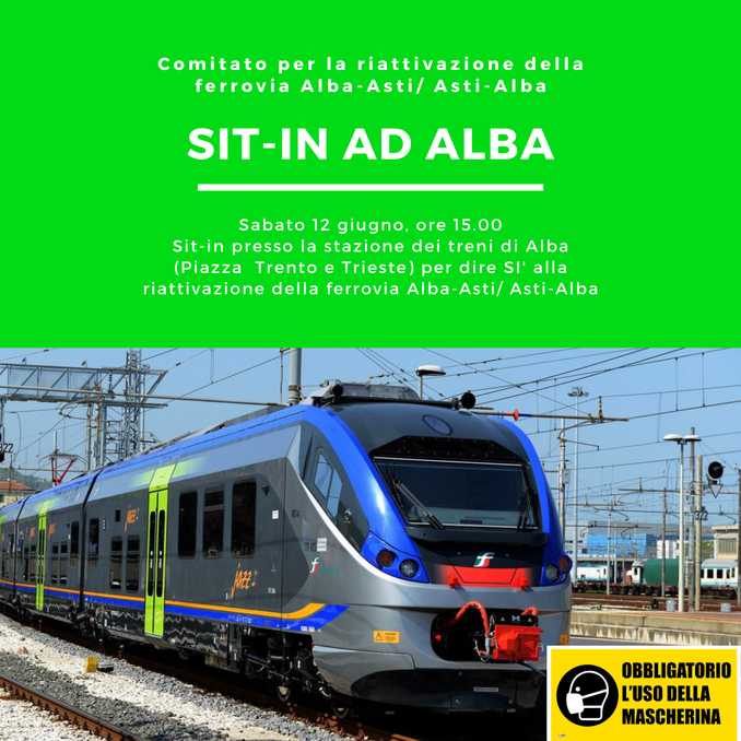 ALBA Il neonato Comitato per la riattivazione della ferrovia Alba-Asti ha indetto un sit-in in piazza Treno e Trieste, davanti alla stazione dei treni di Alba che si terrà sabato 12 giugno alle 15 chiedendo ai partecipanti di usare la mascherina e rispettare le norme anti Covid-19. Durante la manifestazione verranno esposti i propositi e per avere un confronto con la cittadinanza.