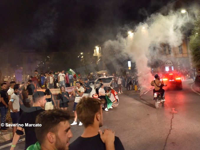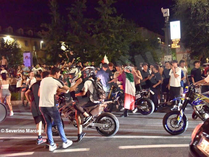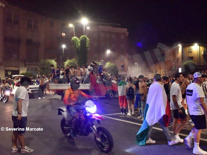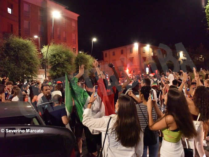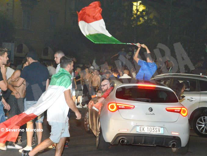 EUROPEI Grande festa anche ad Alba per la conquista del Campionato europeo di calcio maschile. La vittoria ai rigori contro l’Inghilterra ha fatto esplodere la festa dei tifosi, che hanno sfoggiato il classico repertorio di caroselli, cori, fuochi d’artificio e gavettoni. Tutto si è svolto senza che si verificassero incidenti. Da registrare, al massimo, qualche assembramento di troppo.