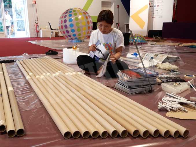 Kumiko Suzuki (Giappone), Solmaz Vilkachi (Iran) e Yunmi Lee (Corea del Sud) utilizzeranno la carta destinata al macero come materiale di lavoro. Il pubblico potrà seguire in diretta la creazione delle opere e scoprire i segreti della lavorazione della carta nel mondo dell’arte: sabato dalle ore 15 alle ore 19 e poi domenica, lunedì e martedì dalle 9 alle 13 e dalle 15 alle 19, fino all’evento serale delle 21 in cui le tre artiste condivideranno con il pubblico il percorso che le ha portate fino al palaAlba. L’iniziativa è organizzata in collaborazione tra la Città di Alba, Aiesm e Miroglio Fashion, che ha fornito i supporti in carta tubolari su cui vengono arrotolati i tessuti che i marchi del Gruppo utilizzano per i campionari e per definire le cartelle colore delle collezioni.