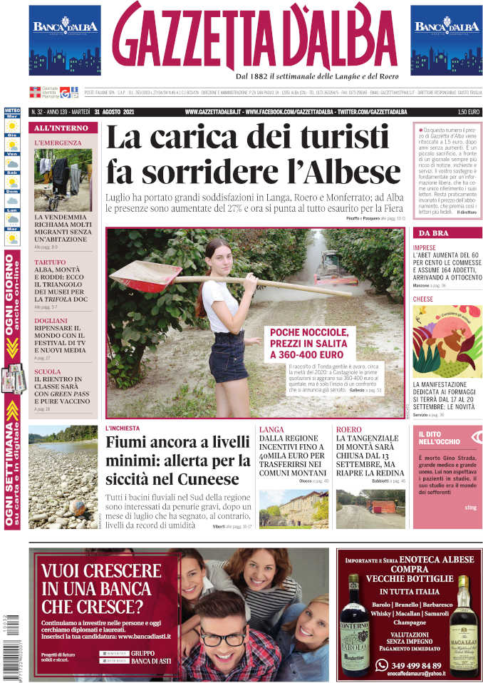 ALBA In anteprima la copertina del numero 32 di Gazzetta d’Alba che sarà disponibile in edicola e in formato digitale da martedì 31 agosto.