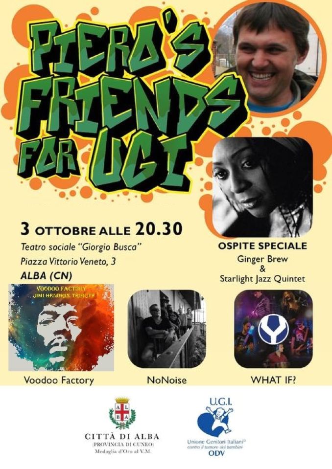 ALBA Domenica 3 ottobre alle 20.30 si terrà al Teatro sociale di Alba il concerto benefico Piero’s friends for Ugi in ricordo di Piero Gilli e a favore dell’Ugi,  associazione genitori italiani bambini oncologici legata all’ospedale Regina Margherita di Torino.