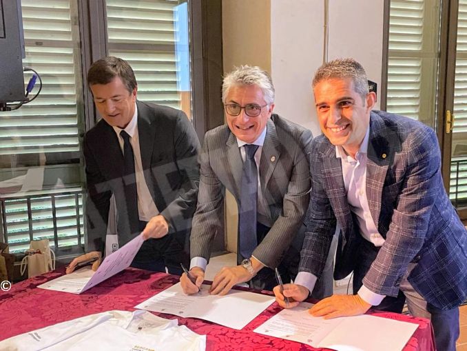 BERGAMO Il sindaco di Alba Carlo Bo, accompagnato dall’assessore al turismo e alle Città creative Unesco Emanuele Bolla, giovedì 21 ottobre a Bergamo, nel Palazzo del podestà, ha firmato con il collega della città Giorgio Gori e quello di Parma Federico Pizzarotti il documento che ufficializza la nascita del distretto delle Città creative Unesco per la gastronomia.